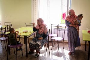 وكأنه مشهد من فيلم، فالمكان هو فندق صغير في صحراء غرب كازاخستان، مزدحم بهؤلاء النسوة اللاتي تعتبرهن حكومات كثيرة مشتبهات بالإرهاب.