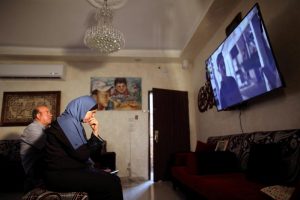 والد ووالدة الفتى الفلسطيني محمد أبو خضير يشاهدان مسلسل “أولادنا” (أور بويز) في منزلهما بالقدس الشرقية يوم 18 أغسطس آب 2019. تصوير: عمار عوض – رويترز