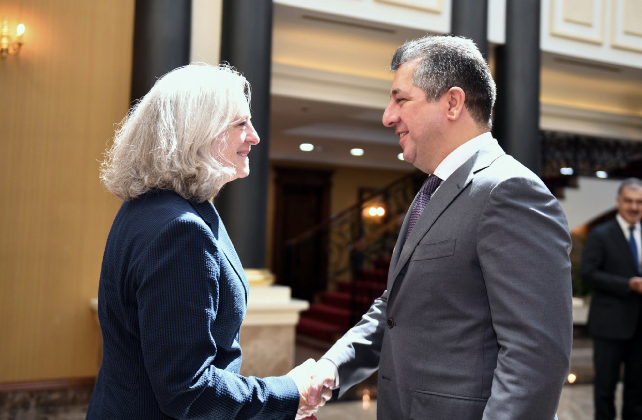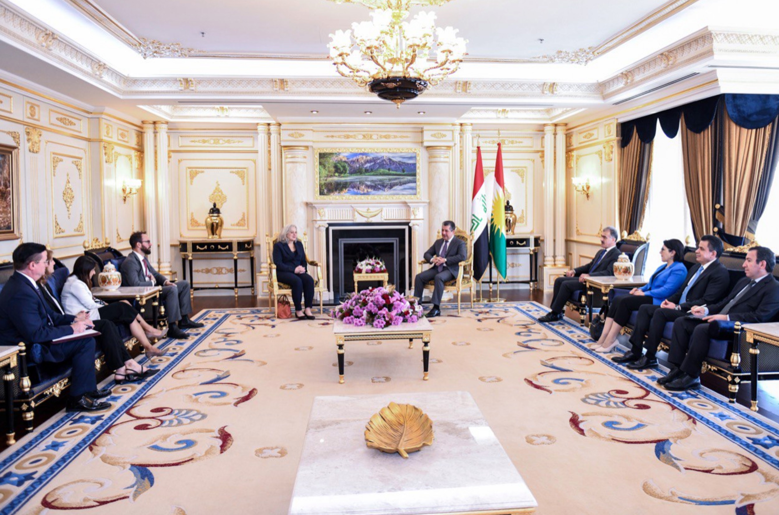 استقبل رئيس حكومة إقليم كردستان مسرور بارزاني ، اليوم الاثنين 2023 ، السفيرة الأمريكية لدى العراق ألينا رومانوسكي، والوفد المرافق لها.
