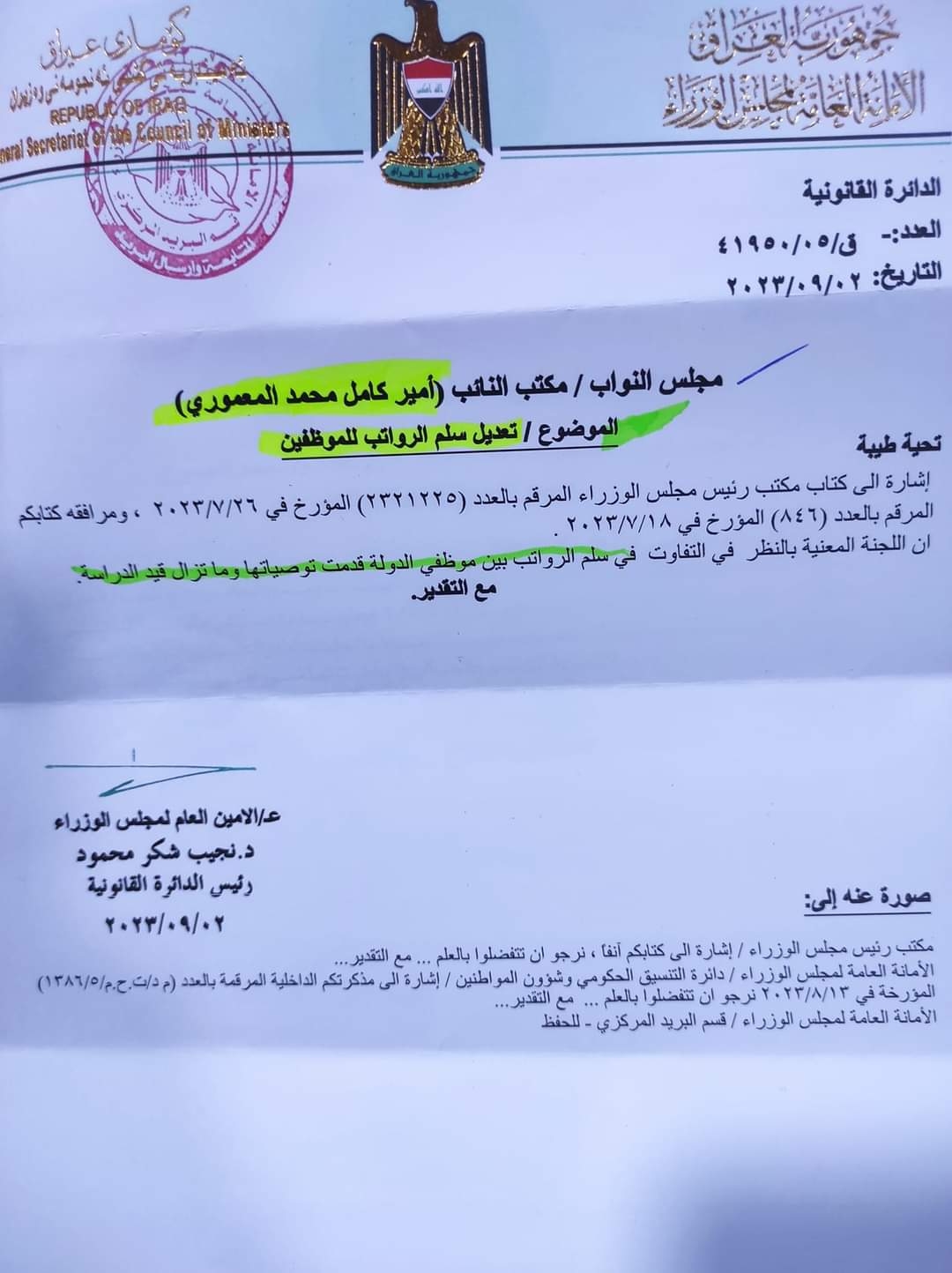 أعلنت الأمانة العامة لمجلس الوزراء، ان تعديل قانون سلم الرواتب للموظفين لازال “قيد الدراسة”.